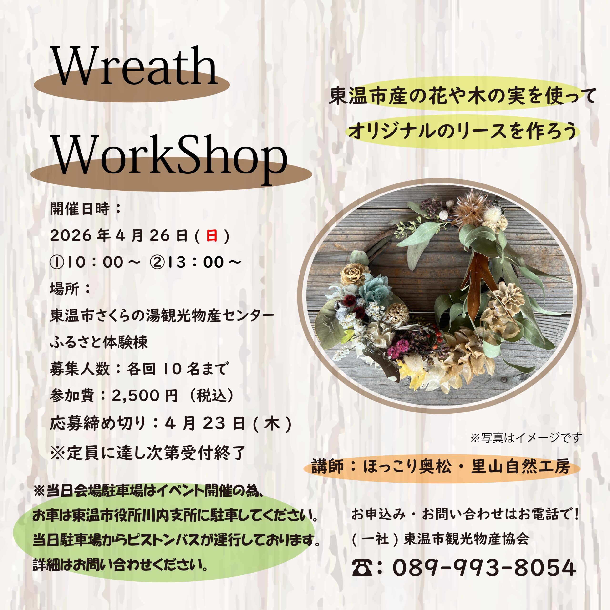 🌺東温市産の花や木の実を使ったリース作り体験🌳